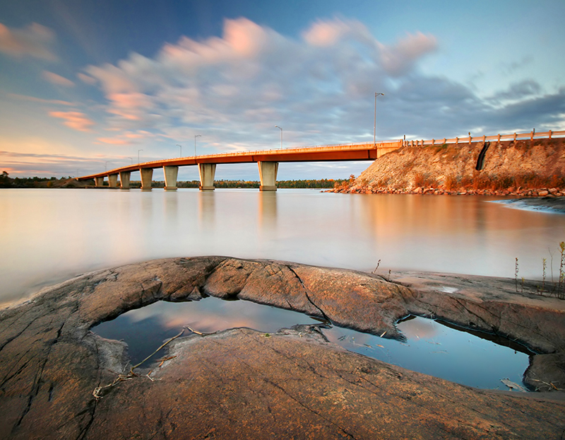| Water collects among the rocks on Twyning Island next to the "Bernt Gilbertson Bridge" which spans St. Joseph Channel, roughly 50 km southeast of Sault Ste. Marie, ON. The bridge was constructed in 1972 & provided the 1st road link to the 2nd largest freshwater island in the world. | Aperture: | f/5.6 | |
