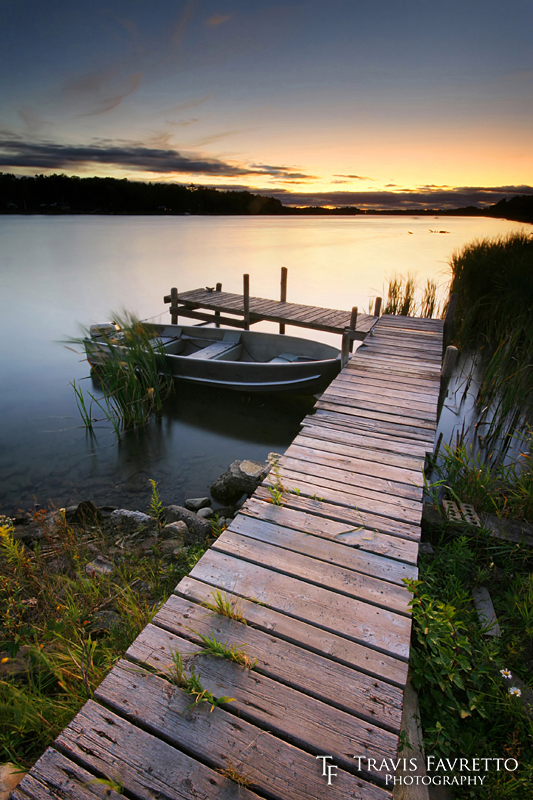| The sun sets over a dock on the St. Marys River, just east of Sault Ste. Marie, ON. | Aperture: | f/16.0 | |