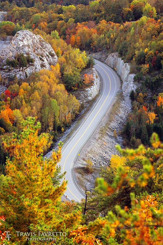 | A view of Highway 6 in early autumn, as seen from the top of Willisville Mountain between Espanola & Little Current, ON. | Aperture: | f/7.1 | |