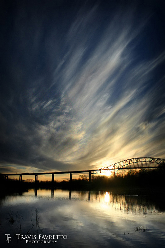 | The sun sets behind the International Bridge, which joins the cities of Sault Ste. Marie, Ontario (Canada) and Sault Ste. Marie, Michigan (United States). This is a series of two horizontal shots stitched together vertically. | Aperture: | f/6.3 | |