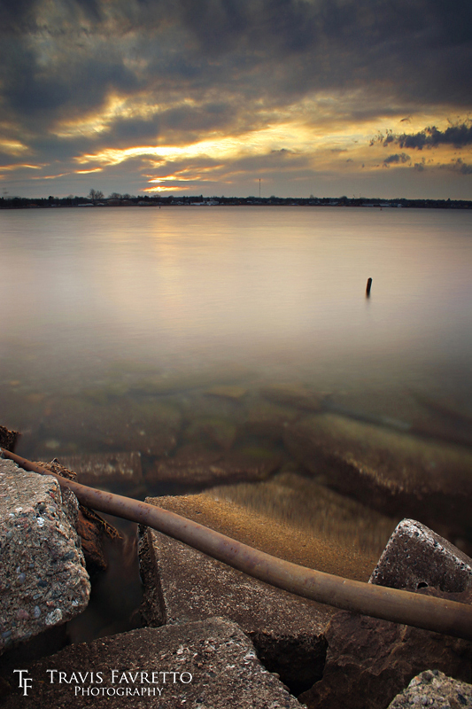 | A rusty pipe snakes its way between slabs of concrete on the shore of the St. Marys River at Bellevue Park in Sault Ste. Marie, ON. | Aperture: | f/13.0 | |