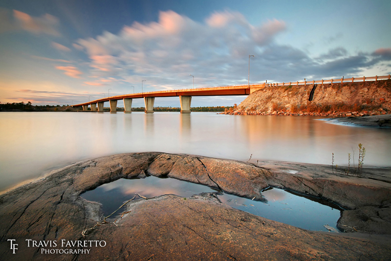 | Water collects among the rocks on Twyning Island next to the "Bernt Gilbertson Bridge" which spans St. Joseph Channel, roughly 50 km southeast of Sault Ste. Marie, ON. The bridge was constructed in 1972 & provided the 1st road link to the 2nd largest freshwater island in the world. | Aperture: | f/5.6 | |