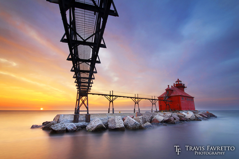 | The sun rises over Lake Michigan at the Sturgeon Bay Canal North Pierhead Light in Sturgeon Bay, Wisconsin. | Aperture: | f/16.0 | |