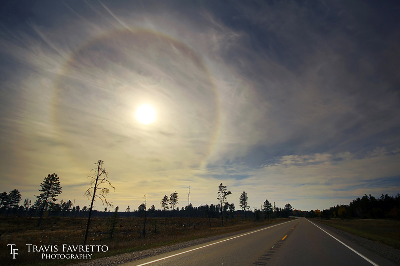 | A solar halo appears on an autumn evening over M-28, roughly 28 km west of Brimley, MI. | Aperture: | f/5.6 | |