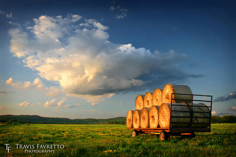 | A cart full of hay bales basks in the evening sun in the heart of the Bar River Valley, roughly 33 km east of Sault Ste. Marie, ON. | Aperture: | f/6.3 | |