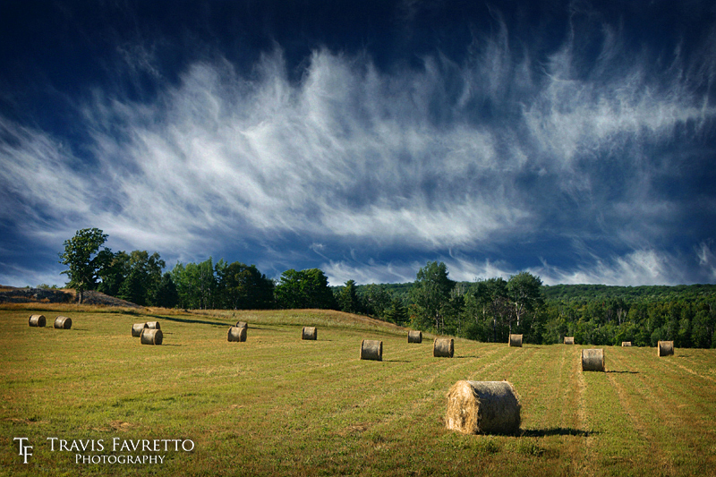 | Hay bales arranged in a field along Plummer Road, roughly 13 km north of Bruce Mines, ON. | Aperture: | f/7.1 | |