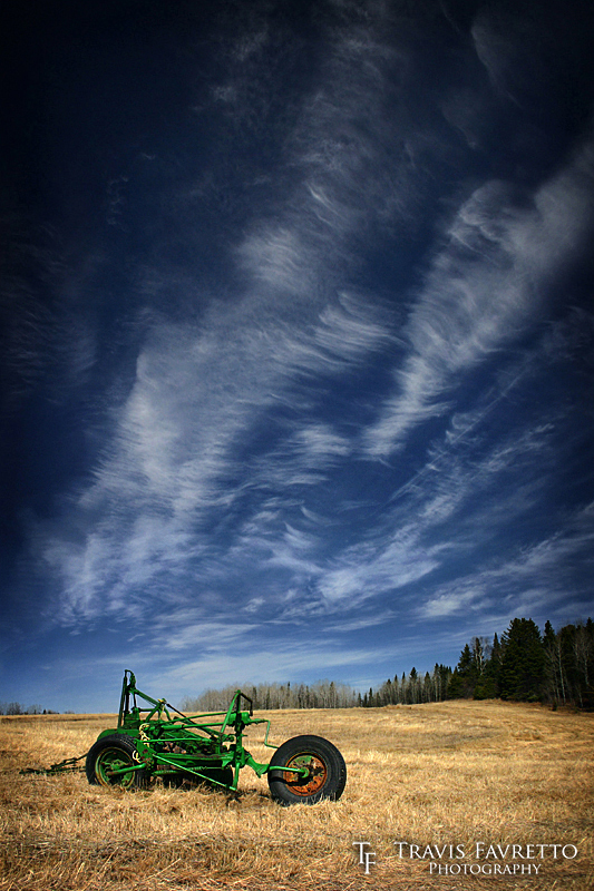 | An old piece of farm equipment sits unused in a field alongside Highway 638, roughly 6 km north of Bruce Mines, ON. This is a series of two horizontal shots stitched together vertically. | Aperture: | f/7.1 | |