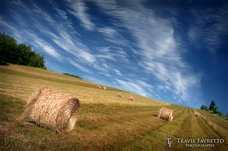 | Hay bales arranged in a field along Old Soo Road, roughly 12 km north of Bruce Mines, ON. | Aperture: | f/7.1 | |